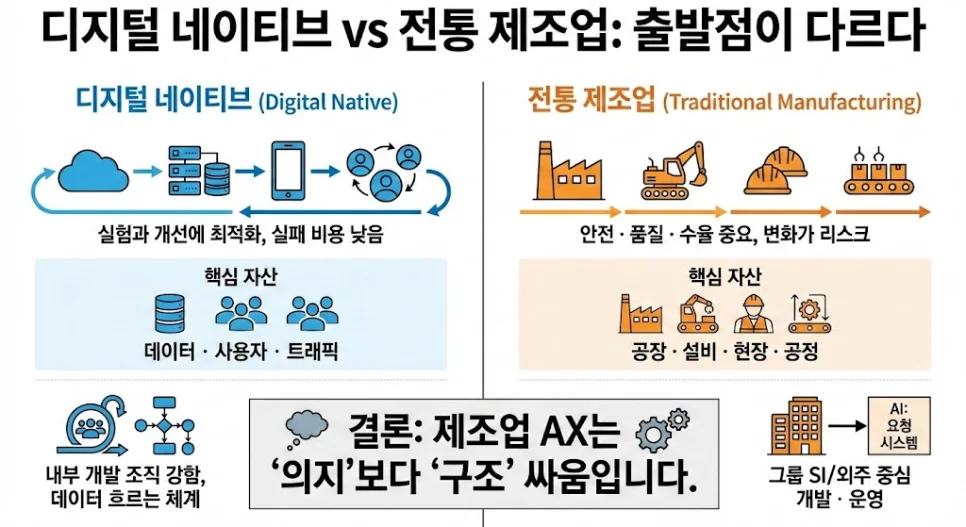 1) 디지털 네이티브 vs 전통 제조업: 출발점이 다르다