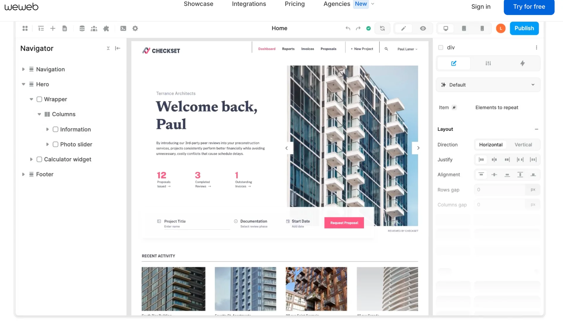 빠른 작업과 직관적인 UI가 필요하다면 WeWeb,